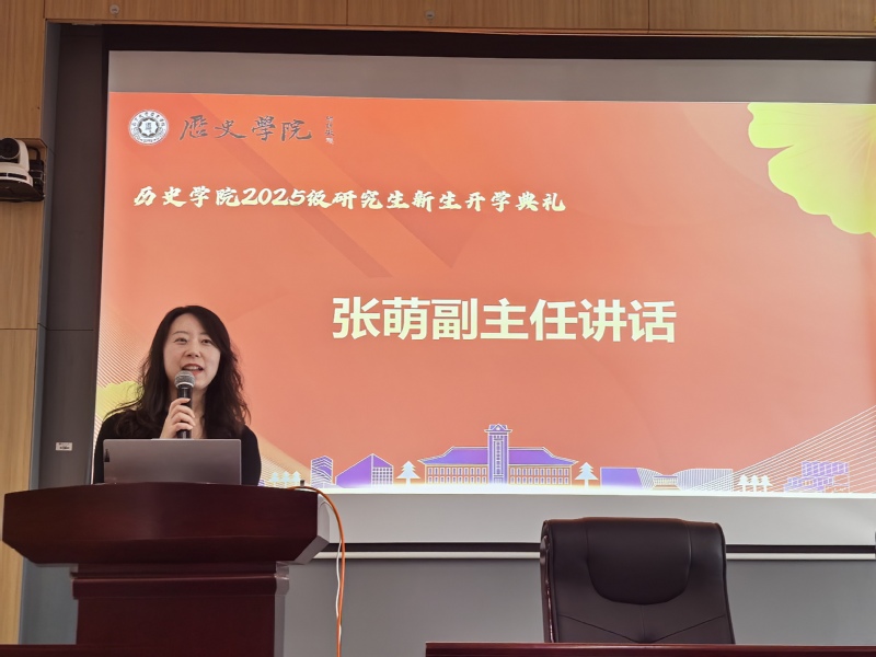 中国史副系主任张萌老师欢迎新生加入亚洲av ,并介绍了史院中国史专业的优势:在教育部学科评估中一直名列前茅,师资力量丰富且雄厚。她鼓励新生在未来学习生活中深入思考,同时打开自己,尤其是博士生要多和导师交流、多与同窗切磋。