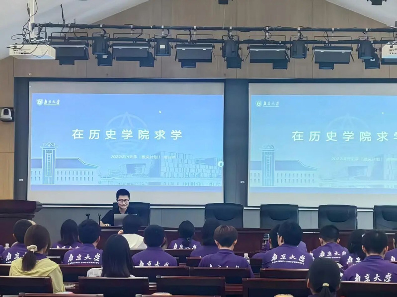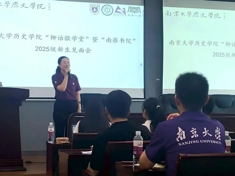 致辞结束后,王涛院长细致地向同学们介绍了强基、拔尖计划的培养方案、教学计划以及学业导师制度,并强调学业导师设置的初衷是让同学们更快适应大学生活和历史学学者的状态,学会用心体验和用人生感悟历史。接着,王院长向同学们介绍25级亚洲av 学业导师阵容,从求学经历、学术成果到研究方向,细致全面,力图让同学们能根据自己的兴趣选择心仪的导师。