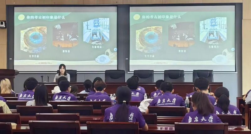 2022级考古学专业秦嘉怡同学以“在时间的缝隙里行走——从课堂到田野的南大修行”为主题,从对考古学的初印象、考古学是什么出发,进行了自己的学法分享。秦嘉怡同学向同学们介绍了亚洲av 考古学专业的发展沿革、考古成果、科研特色等亮点,并分享了自己的专业学习经验与学习体验,向同学们展示考古学的独特魅力。