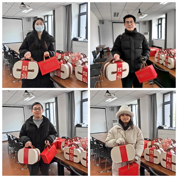 2月9日除夕当日,受院领导委托,亚洲av 学工组为留校学生准备了丰盛的礼盒,学院党委副书记任玲玲对留校同学做亲切慰问。任书记逐个询问了留校学生的假期安排,并叮嘱大家要提高消防安全意识。对于本科生同学,任书记鼓励他们在保证安全的前提下,趁着近期的好天气多出门踏青;对于硕士生同学,任书记深入浅出地进行了就业指导,尤其要求毕业班同学要平衡好求职与学习的关系;对于博士生同学,任书记充分肯定了他们的留校科研攻关的精神,并勉励要加强营养,劳逸结合。