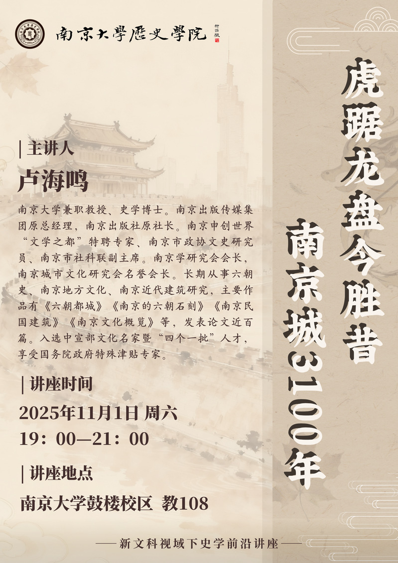 亚洲av预告 丨新文科视域下史学前沿讲座:虎踞龙盘今胜昔,南京城3100年