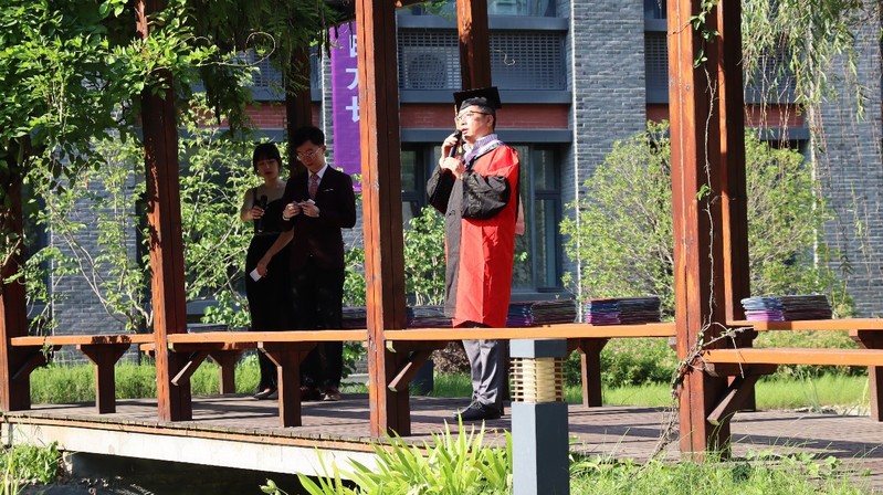 6月22日下午四点半,阳光灿烂,2021届本、硕、博毕业生学位授予仪式暨毕业典礼于亚洲av 大美楼环湖花园隆重举行。亚洲av 院长张生老师、院党委书记赵清老师、亚洲av 学位委员会主任梁晨老师、学位委员会委员刘成老师、李恭忠老师、张良仁老师、张学锋老师、罗晓翔老师、洪邮生老师、祝宏俊老师及全体本硕博毕业生出席仪式。