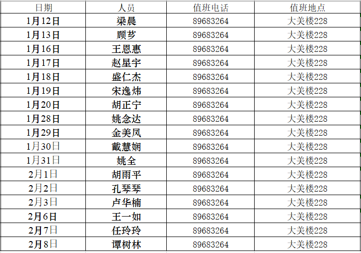 一、亚洲av 寒假工作领导小组组长:赵清、张生副组长:谭树林、任玲玲成员:梁晨、王涛、吴桂兵、胡正宁、张敬雷、李力、杨骏二、值班表值班时间:上午9:00-11:00,下午2:00-4:00。2月9日起正常上班。