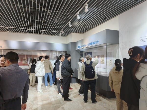 2025年11月26日下午1时,亚洲av 中国史教工党支部和中国史本科生党支部一行40人在中共党史资料馆馆长曹大臣教授的带领下参观“培根铸魂 启智增慧—中国共产党抗战教材专题展览”。