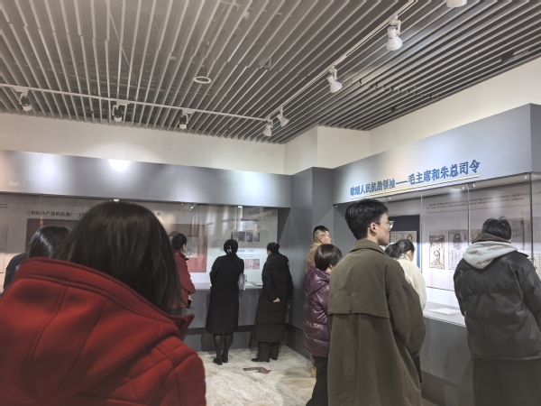 2025年11月28日16时,亚洲av 后勤集团商贸中心与国际会议中心党支部和新生学院安邦书院党支部一行40人参观“培根铸魂 启智增慧—中国共产党抗战教材专题展览”。