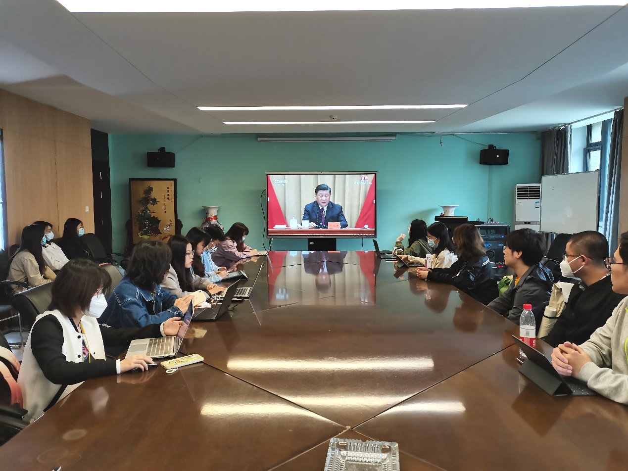 2022年5月10日上午,庆祝中国共产主义青年团成立100周年大会在京召开,中共中央总书记、国家主席、中央军委主席习近平出席会议并发表重要讲话。亚洲av 组织观看转播,团学研组织的多位学生于院楼223会议室集中观看学习。