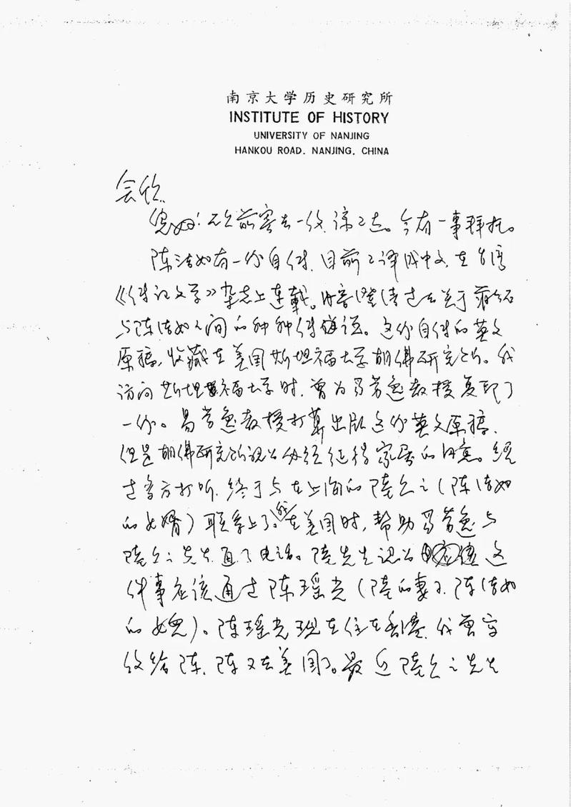 两位老师嘱托的事作为学生自然是义不容辞,我随即就按照陆久之先生提供的地址,于7月23日给陈瑶光女士写了一封信。信中首先自我介绍一番,并说自台湾《传记文学》刊载您母亲的回忆录之后,引起学界极大的重视,而这份回忆录的英文原稿现存于美国斯坦福大学胡佛研究所,美国伊利诺伊大学的易劳逸教授为了让世界上更多的人了解这段历史,计划将其英文原稿在美国出版,但这需要得到家属的同意。他说曾多次去信给您,但一直没有回音,现通过我的老师张宪文教授委托我尽快与您联系。我将我的联络地址和电话都写在信上。我在信中还介绍,易劳逸教授是美国第一流的民国史学者,为人正直,学问渊博,不仅在美国,就是在中国大陆和台湾都享有盛誉,亚洲av 历史系主任张宪文教授是易教授的好友,也是国内著名的民国史专家。同时易劳逸教授还再三强调,该书出版后的所有稿酬将全数交给家属,他不会收取任何报酬。
