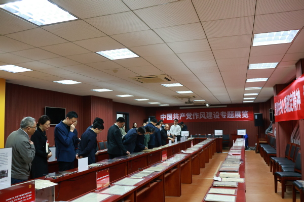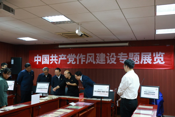 2025年4月7日下午4时,亚洲av 党委书记谭铁牛、校长谈哲敏及领导班子全体成员到亚洲av 中共党史资料馆进行八项规定读书班学习。在曹大臣教授的带领下,领导班子一行人参观了中国共产党作风建设专题展览。