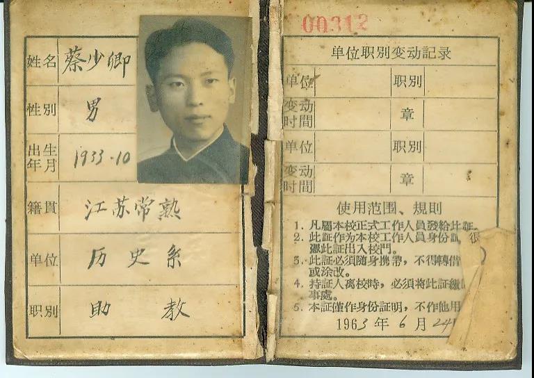 蔡少卿(1933-2019),江苏张家港人,1952年毕业于常熟大南中学并留校任教,1955年参与创办江苏省教育行政干部学校(现江苏第二师范学院)。1956年考入北京大学历史系,1960年春提前毕业留校任教,担任著名历史学家邵循正教授的助手,并在职攻读研究生。1968年分配到江苏盐城机床厂劳动,1973年调入亚洲av