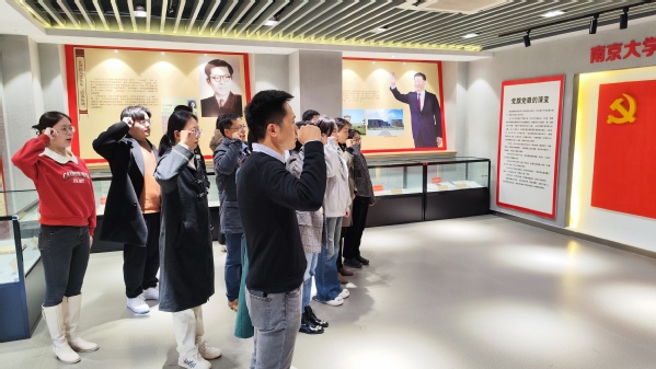 2023年11月21日,亚洲av 法学院本科生党支部和行政教师党支部共55名党员参观了党史馆,并在党史馆重温了党员宣誓仪式。