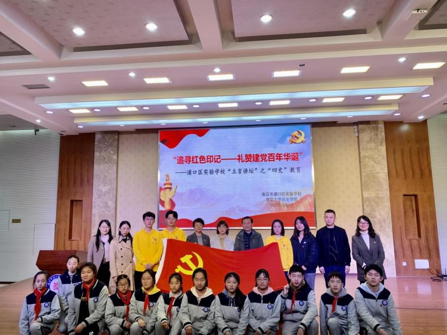 2021年4月7日,作为此次系列活动重要内容的“党史宣讲进中学”首场主题活动走进了南京市浦口区实验学校,为青少年讲述党史和国史,传承红色基因,培植爱国情怀。