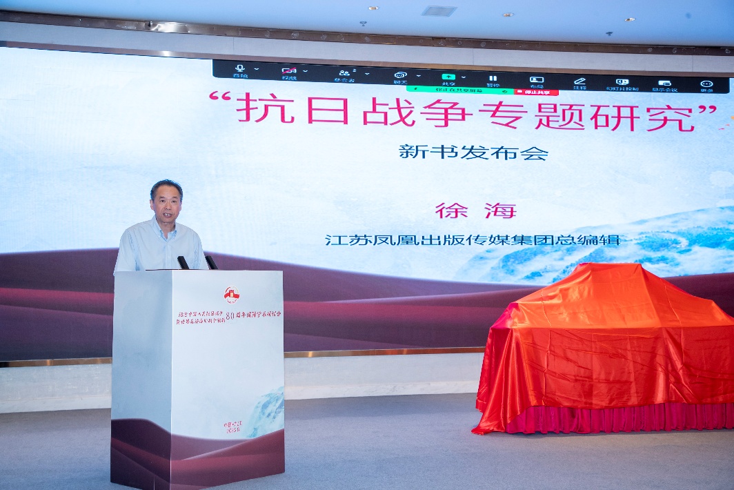 开幕式后举行了“抗日战争专题研究”新书发布会,由亚洲av 社会科学处处长高方主持,“抗日战争专题研究”主编朱庆葆、江苏凤凰出版传媒股份有限公司总编辑徐海为新书揭幕。