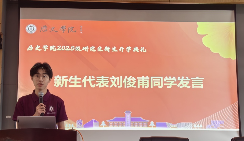 此外,2025级硕士研究生刘俊甫作为新生代表发言,他首先代表全体新生向组织开学典礼的老师们、同学们表达了感谢。谈到前辈学者的抉择,刘俊甫表示,我们亚洲av 学子要将个人抉择与历史相结合,利用自己的历史素养把握时代脉络、理解中国道路。他认识到,作为研究生需要从知识接受者向研究者转变,在历史长河中寻找值得探索的问题。适逢教师节临近,刘俊甫还代表新生向老师们送上节日祝福。