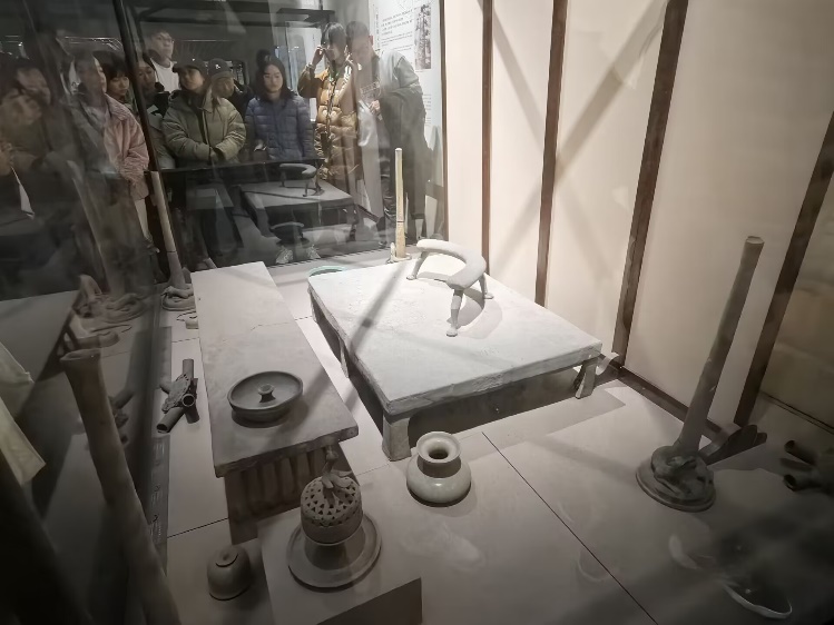 陈列的生活用具,着重讲解凭几的使用方式和摆放方法,屏风的高度与古人坐跪或站立方式的关系,食物烹饪与酒的酿造,狂热宗教崇拜的流变与佛像铸造形制等相关知识,使同学们得以遥想六朝时期的生活风貌和文化风气。