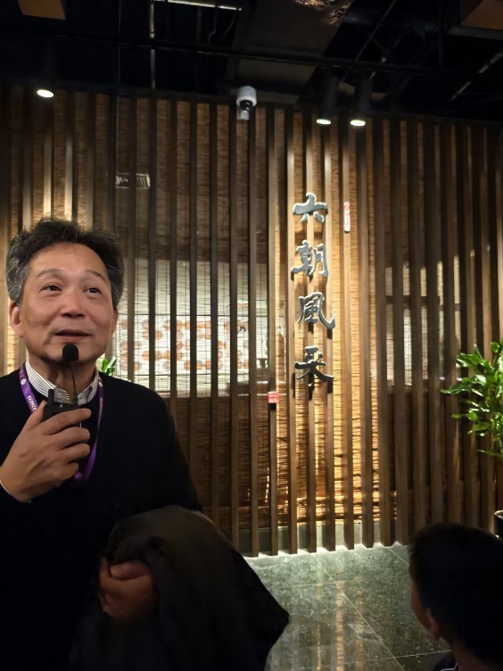 进馆后,张学锋老师在有东吴东晋宋齐梁陈字样的挂带下讲解六朝馆概况、设计理念,由同学们脚下的菱形地板讲述背后蕴含的贝氏风格;同时张老师提及考古现状并对同学们提出殷切期望——重视发明考古、进行新史学研究。