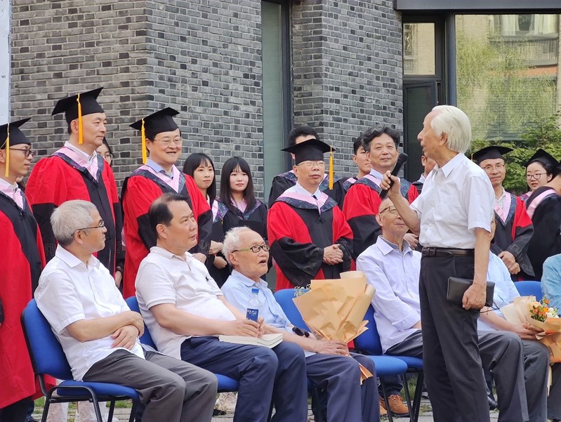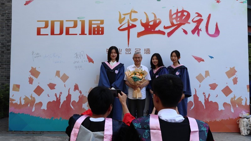 时值建党百年,学院特别有请张宪文、曹廷清、卢明华三位光荣在党五十年的教师代表为毕业班同学发表寄语。教授们分别致辞,祝愿毕业生们毕业之后能在岗位上尽自己最大努力、做出贡献、实现人生价值。生在这个时代,大家都是非常幸运的,因此更要珍惜机会,主动担当责任。