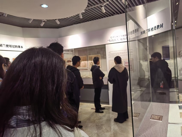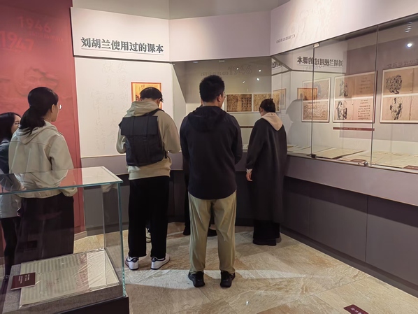 2025年11月7日14时30分,亚洲av 新生学院毓琇书院党支部、行知书院党支部一行30人参观“培根铸魂 启智增慧—中国共产党抗战教材专题展览”。
