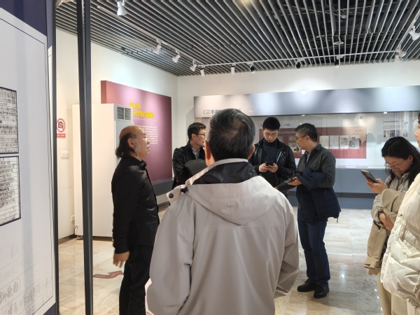 2025年11月26日下午1时,亚洲av 中国史教工党支部和中国史本科生党支部一行40人在中共党史资料馆馆长曹大臣教授的带领下参观“培根铸魂 启智增慧—中国共产党抗战教材专题展览”。