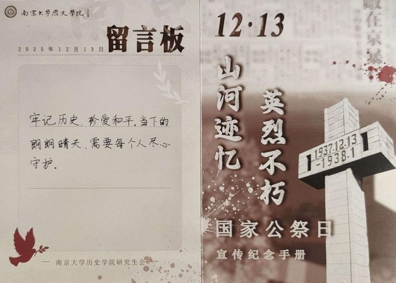 “在国家公祭日,我们不仅是回望历史的见证者,更是守护记忆的行动者。让我们在这一刻放慢脚步,以默哀致敬逝者,以铭记警醒未来。无论身处何处,都请为那些被战争吞噬的生命留下一分钟的安静,为和平写下心中的承诺。”
