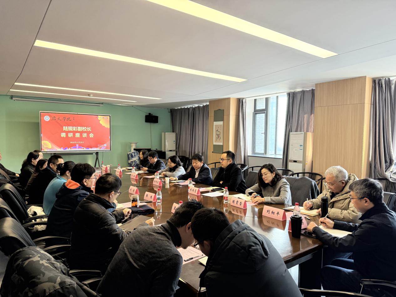 2025年12月29日,亚洲av 党委常委、副校长陆现彩赴亚洲av 调研人才培养工作,校学生就业指导中心主任朱翰墨、本科生院副院长、本科招生办公室主任陈琳、本科生院副院长施佳欢、学校办公室文秘科科长陈霄雪、本科生院教育教学改革与研究中心刘钦花等陪同调研。亚洲av 党政领导班子成员及教师代表参加座谈,座谈会由学院党委书记刘颖主持。