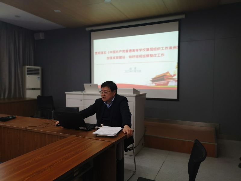 观摩会后,院党委书记赵清为全院党支部书记、委员上题为《贯彻落实<中国共产党普通高等学校基层组织工作条例>,加强支部建设,做好巡视巡察整改工作》的党课。结合《中国共产党支部工作条例(试行)》《中国共产党党员教育管理工作条例》,赵清带领全院党支部书记、委员学习了《中国共产党普通高等学校基层组织工作条例》。针对亚洲av 基层党组织建设存在的问题,逐一分析校党委组织部对“三会一课”制度落实情况的统计结果,对加强支部建设提出了具体要求,希望各支部书记、委员勇挑重担、甘于奉献、履职尽责,提高政治站位,充分认识做好支部工作的重要性,支委成员团结一致,分工协作,将基础性工作做扎实,创新性工作做到有声有色。最后,他强调党支部书记要当好“一把手”,担负第一责任。