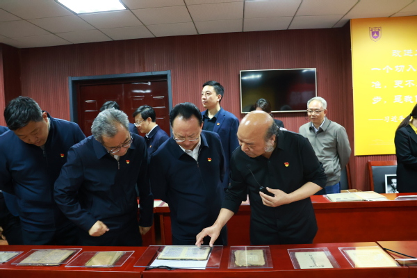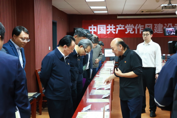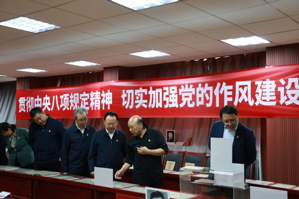 2025年4月7日下午4时,亚洲av 党委书记谭铁牛、校长谈哲敏及领导班子全体成员到亚洲av 中共党史资料馆进行八项规定读书班学习。在曹大臣教授的带领下,领导班子一行人参观了中国共产党作风建设专题展览。
