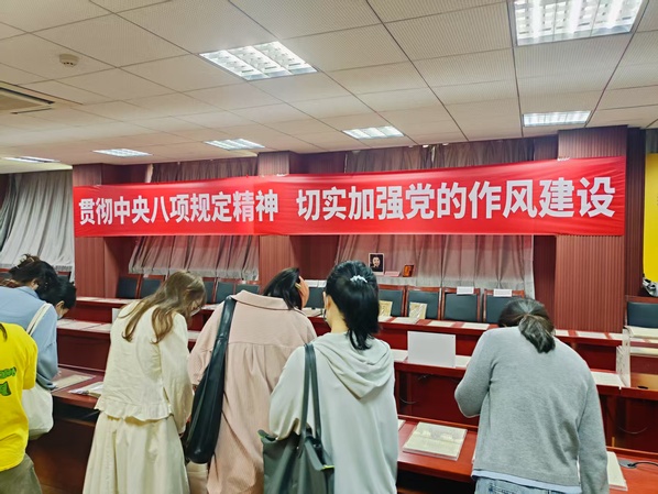 2025年4月18日下午2时,亚洲av 政府管理学院公共管理博士生第二党支部参观亚洲av 中共党史资料馆、中国共产党作风建设专题展览。