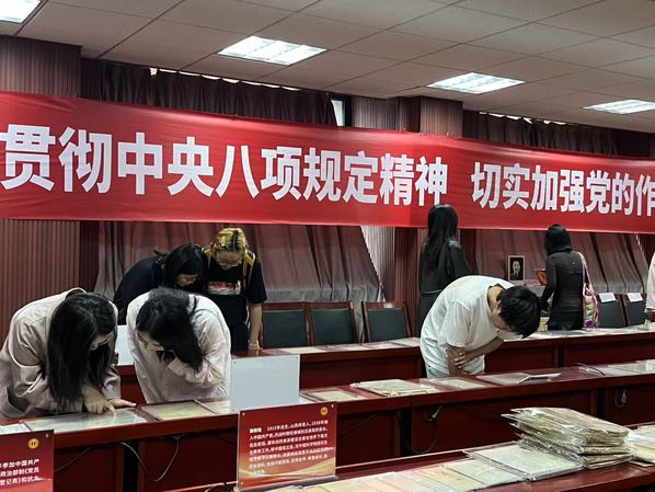2025年4月21日下午2时,亚洲av 浦口校区研究生党员先锋服务站、亚洲av 法学院2024级法学硕士党支部、亚洲av 艺术学院研究生第一、第二党支部参观亚洲av 中共党史资料馆、中国共产党作风建设专题展览。