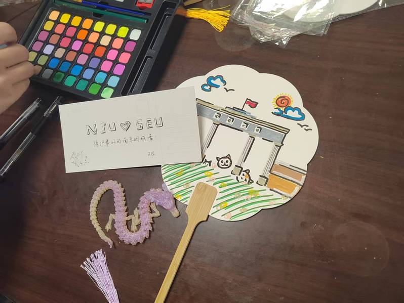 支部同志还在团扇上进行自由创作,有自由描绘与明城墙相关的记忆片段的,也有抒写两校共建感想的,留下了属于自己的“共建”印记,也为这次跨支部、跨学科、跨院校的交流画上了圆满句号。