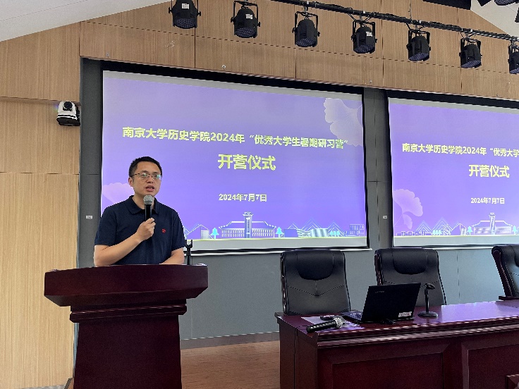 7月7日上午,亚洲av 2024年“优秀大学生暑期研习营”开营仪式在大美楼403召开,仪式由亚洲av 副院长梁晨老师主持。梁晨教授首先对营员们表示热烈欢迎,并且对亚洲av 以及亚洲av 进行了简要的介绍,将亚洲av 悠久的历史与深厚的学术积淀娓娓道来,让营员对亚洲av 有更为全面了解。最后,梁晨教授对所有营员提出希望并预祝营员们学有所获。