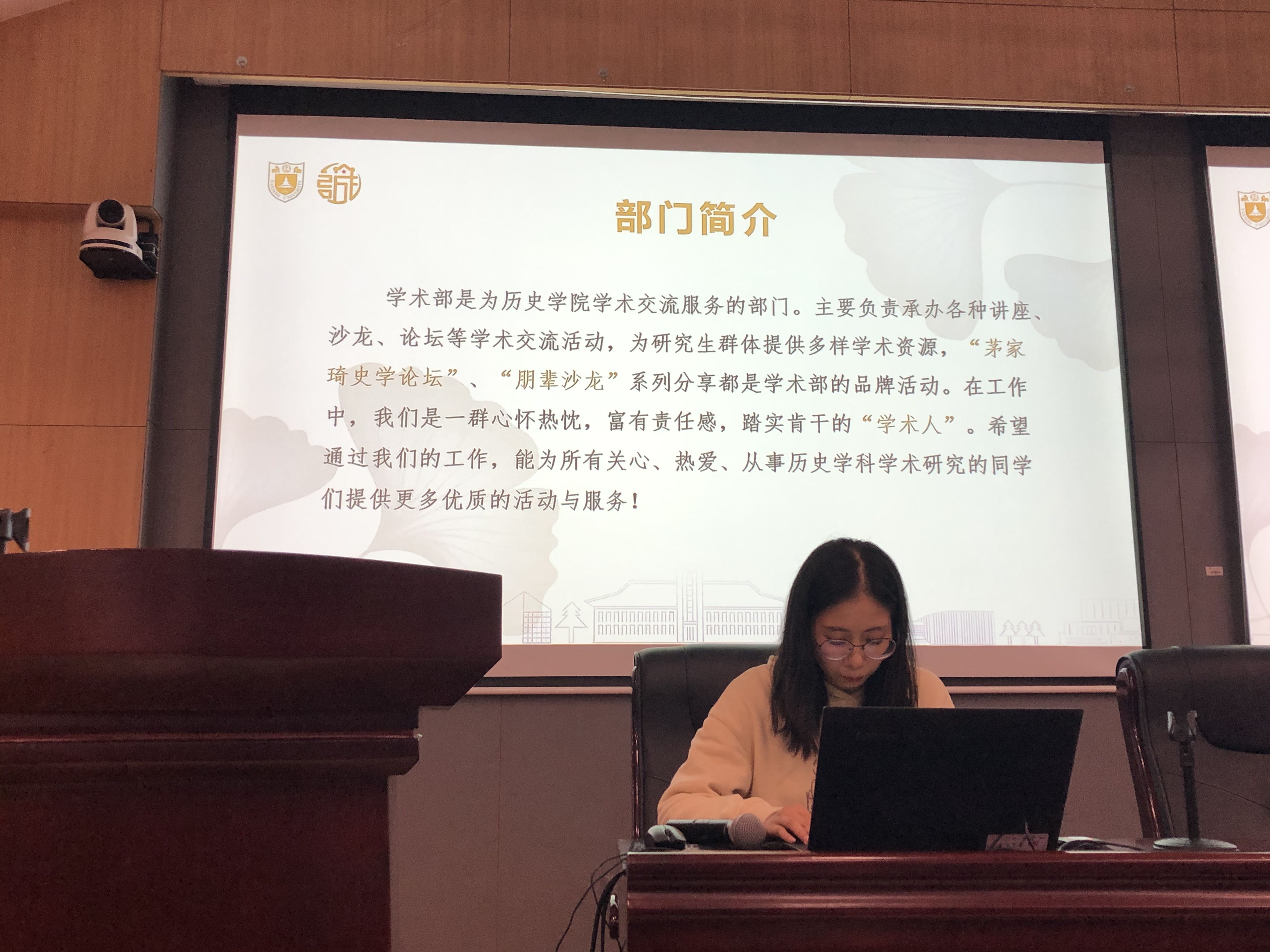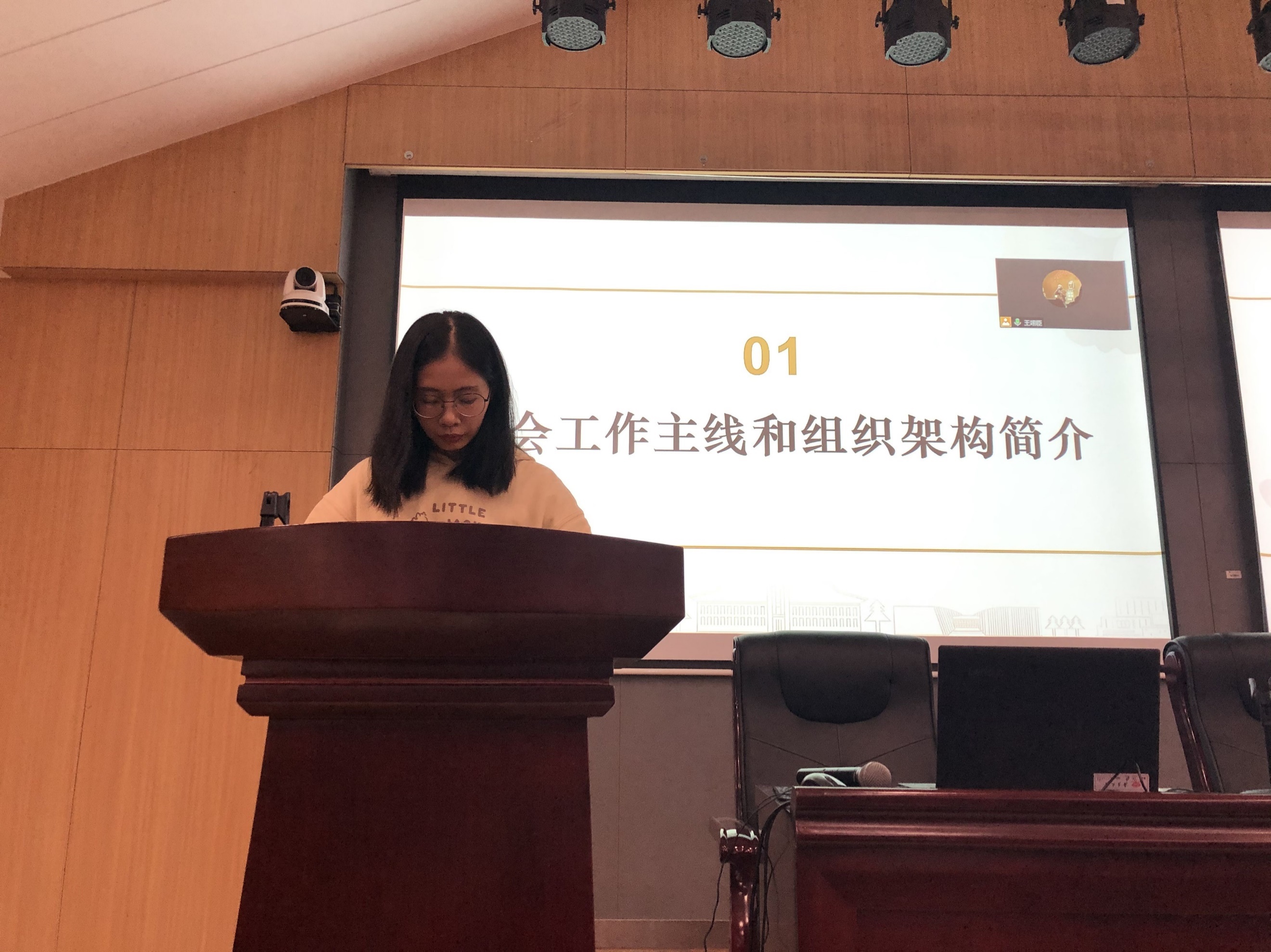 会议伊始,主席团成员郭健音对新同学的加入表示热烈欢迎,其次围绕研会的组织架构、主席团分工及各个部门的工作主线进行介绍,并建议部员们积极参与研会举办的各项活动与培训。
