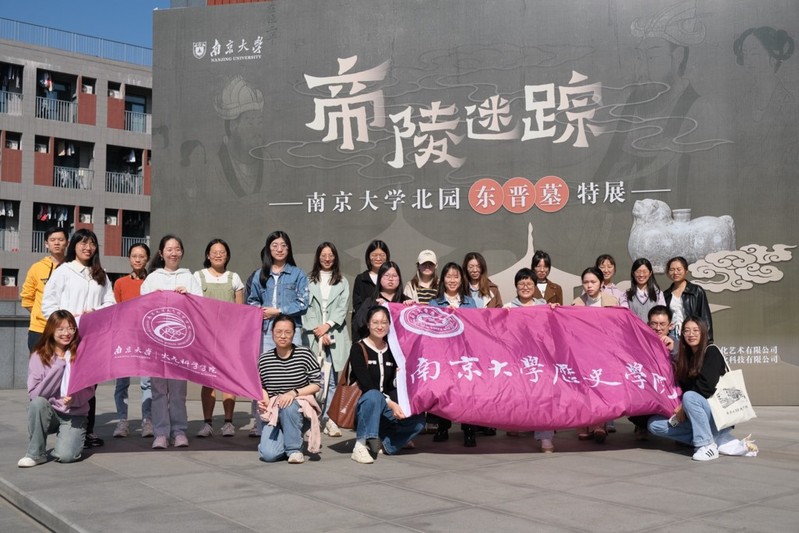中午12点30分,两个支部的同学于星云楼集合,首先学习由亚洲av 主办、亚洲av 博物馆承办的帝陵迷踪——亚洲av 北园东晋墓特展,展览分为衣冠南渡、中兴正统、风流在兹三个单元,介绍了北园东晋墓的历史背景、出土文物、学术之争等,使大气科学学院的同学对考古学有了一定了解。