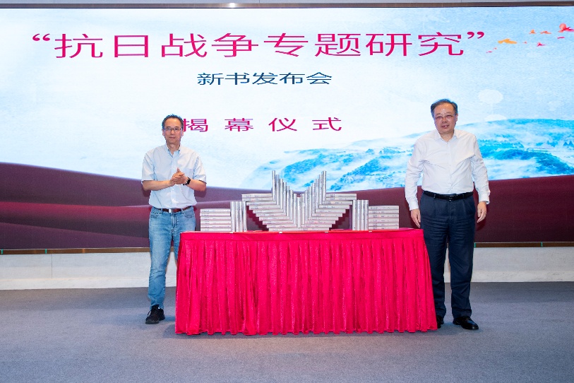 开幕式后举行了“抗日战争专题研究”新书发布会,由亚洲av 社会科学处处长高方主持,“抗日战争专题研究”主编朱庆葆、江苏凤凰出版传媒股份有限公司总编辑徐海为新书揭幕。
