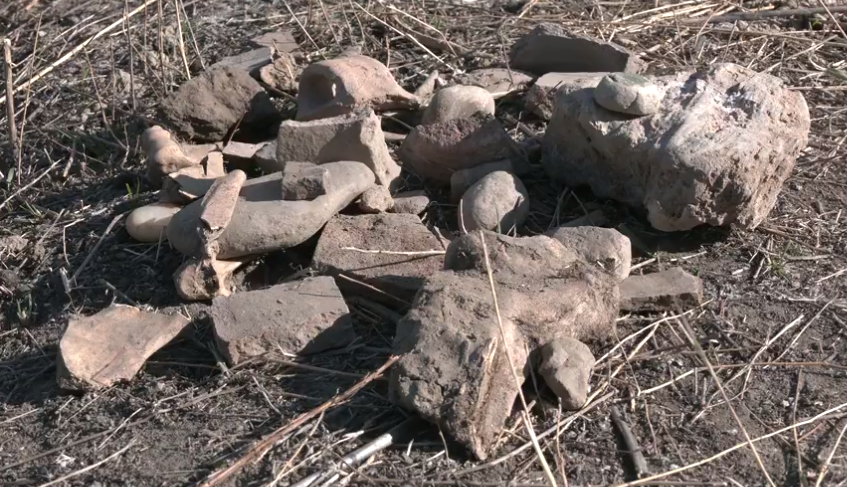 A group of experts from the Department of Archaeology and Cultural Relics, School of History, Nanjing University, collected residual pottery shards, a few animal bones, stone fragments and other relics on the ground at the site Zhang Zhengbin